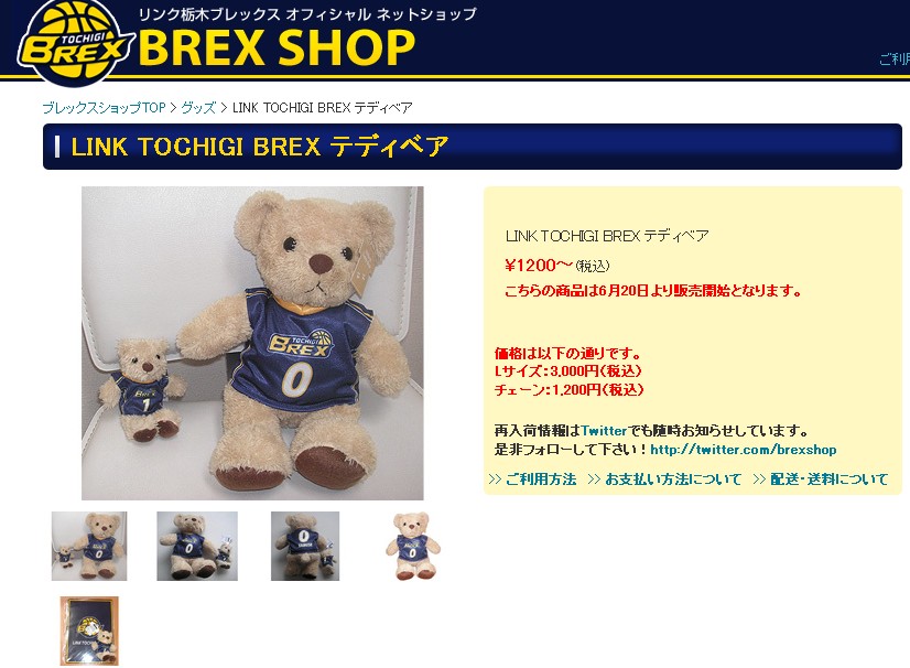 『LINK TOCHIGI BREX』の選手ナンバー入りユニフォームを着用したテディベアが
