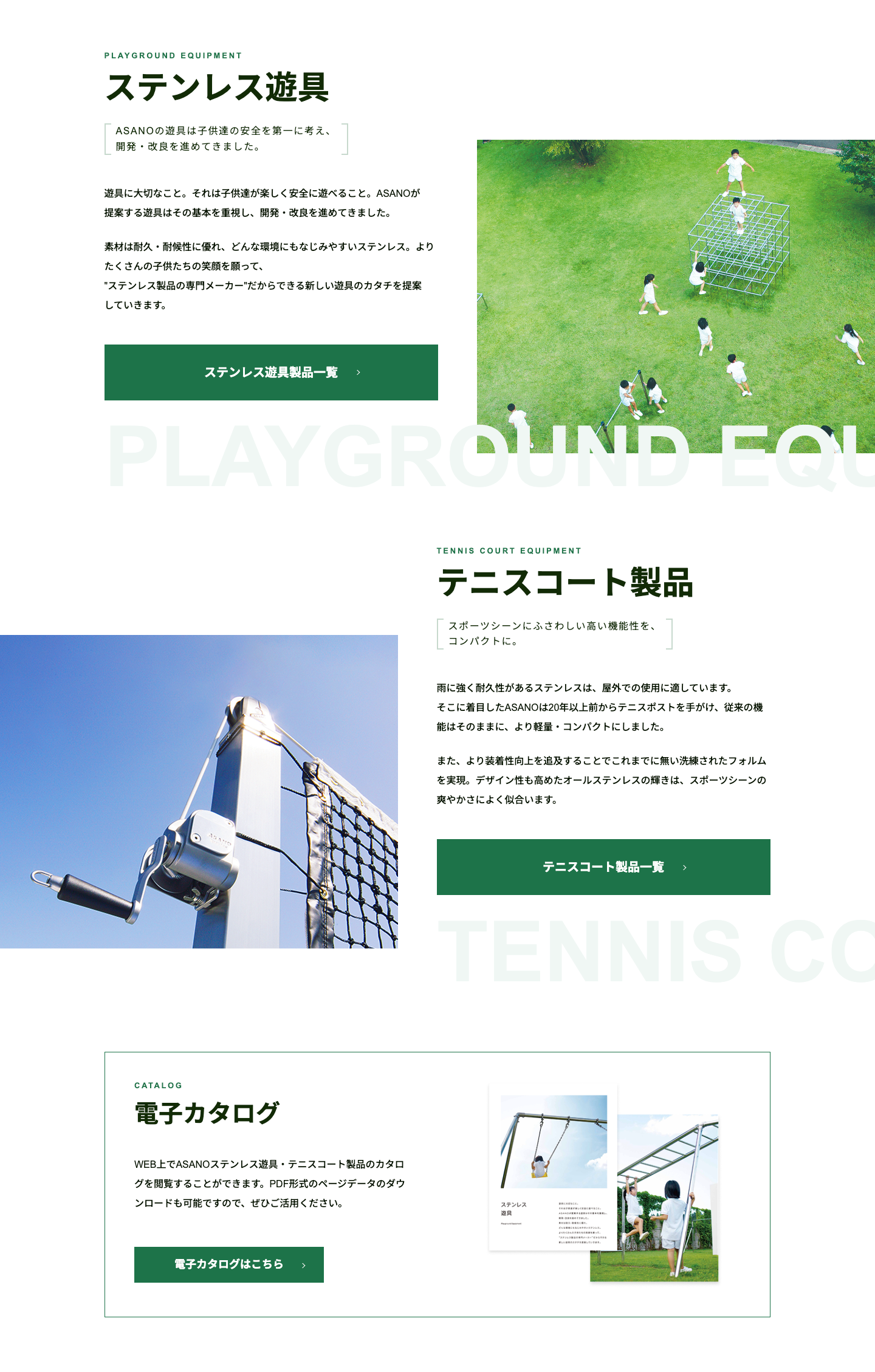 「ステンレス遊具」と「テニスコート製品」の2カテゴリを独立させた新規サイトを制作しました。